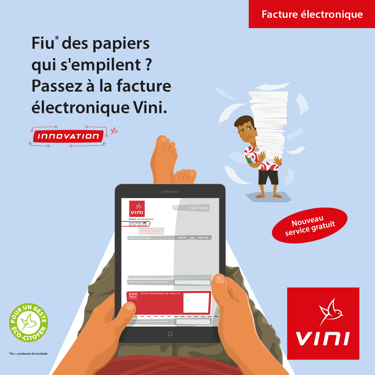 Dans la continuité de ses efforts écocitoyens, Vini lance sa facture électronique à compter du mois de janvier 2019. Moins de papiers qui s’empilent, une gestion plus simple et plus pratique grâce au service Digiposte.