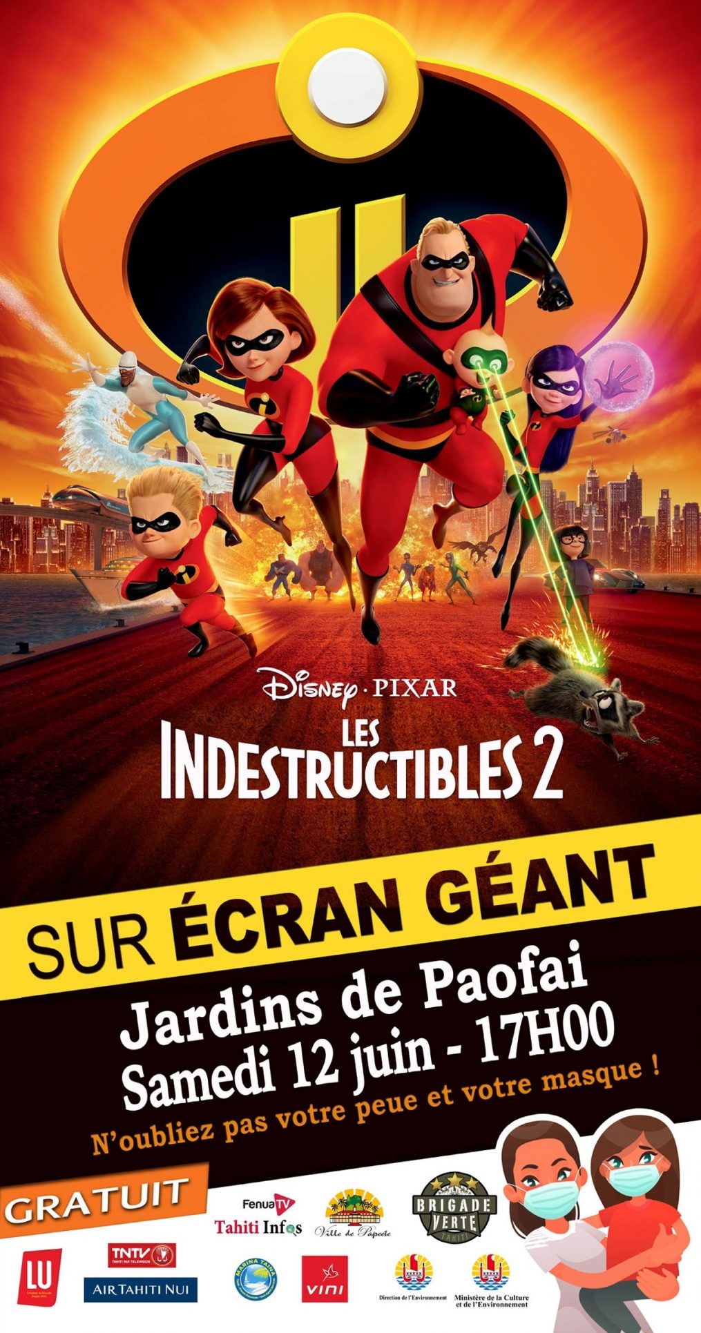 Pour clôturer cette semaine de sensibilisation à l’environnement, une projection géante en plein air du film « Indestructibles 2 » sera organisée dans les jardins de Paofai le samedi 12 juin 2021 selon les restrictions sanitaires en vigueur. Une projection qui était très attendue par les familles suite à une année blanche.